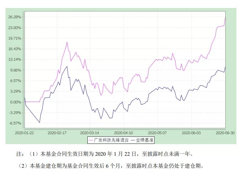 广发科技先锋混合基金的业绩比较基准是中证TMT产业主题指数收益率×35%+中国战略新兴产业成份指数收益率×35%+中证全债指数收益率×30%,从成立以来的业绩表现来看,一直跑赢业绩比较基准。