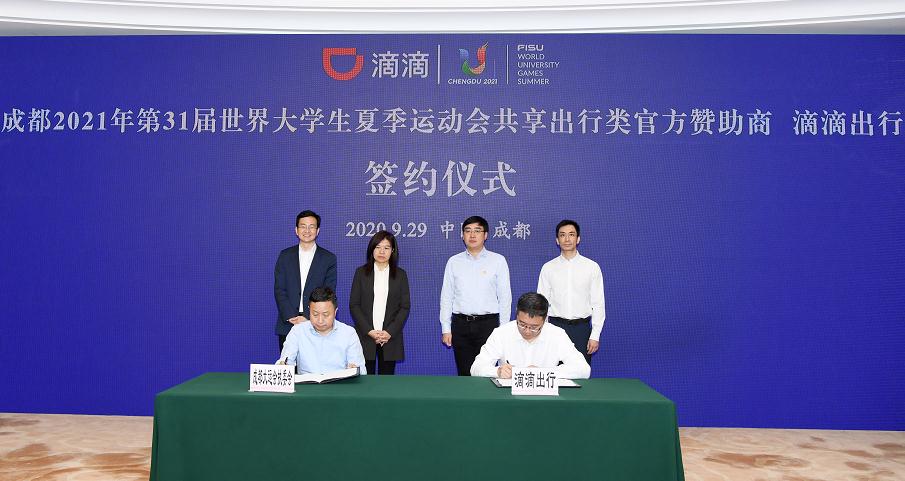2020年9月29日,成都大运会执委会与滴滴出行签署赞助合作协议——滴滴出行正式成为“成都2021年第31届世界大学生夏季运动会共享出行类官方赞助商”。滴滴出行是移动出行等领域处于全球领先地位的科技公司。