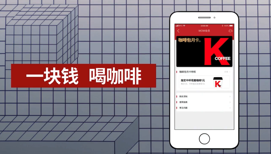 在配方升级的同时,肯德基再次推出了去年曾引爆咖啡圈的终极价格战产品——K COFFEE咖啡包月卡,只要购买这张价值38元的咖啡月卡,在30天内,每天都能以1元的价格享受指定咖啡一杯。