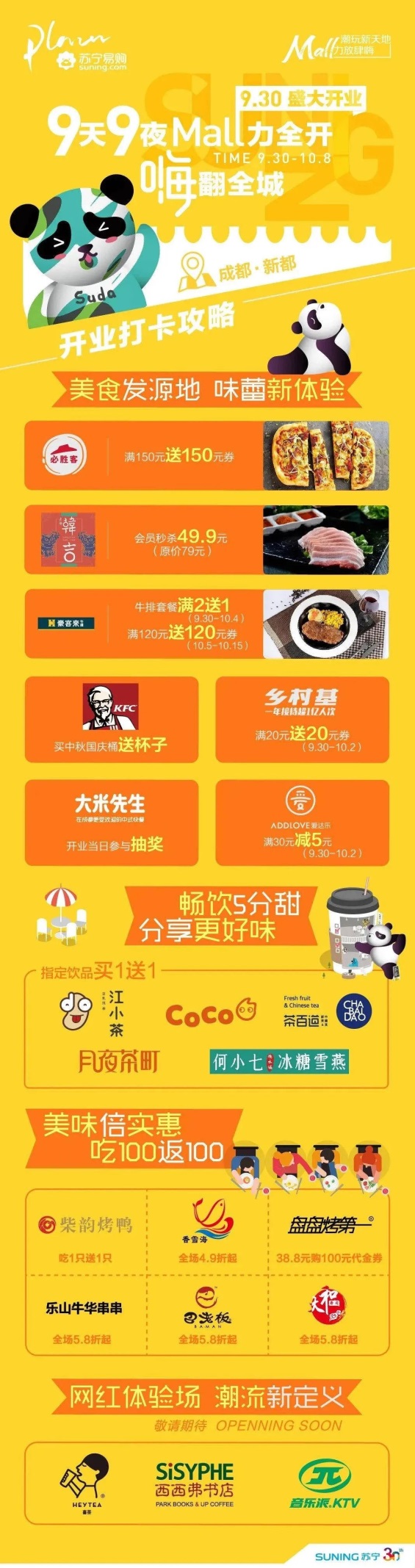 新都苏宁易购广场响应国家的节日号召,集合苏宁三大集团力量,助力万家商户数字化业绩转型升级,带动黄金周线上线下亿级消费规模!丰富的开业活动和实实在在的促销政策,把消费留在本地,让新都市民消费更加接近潮流时尚,进一步激发新都区人民的消费热情,释放消费潜力!