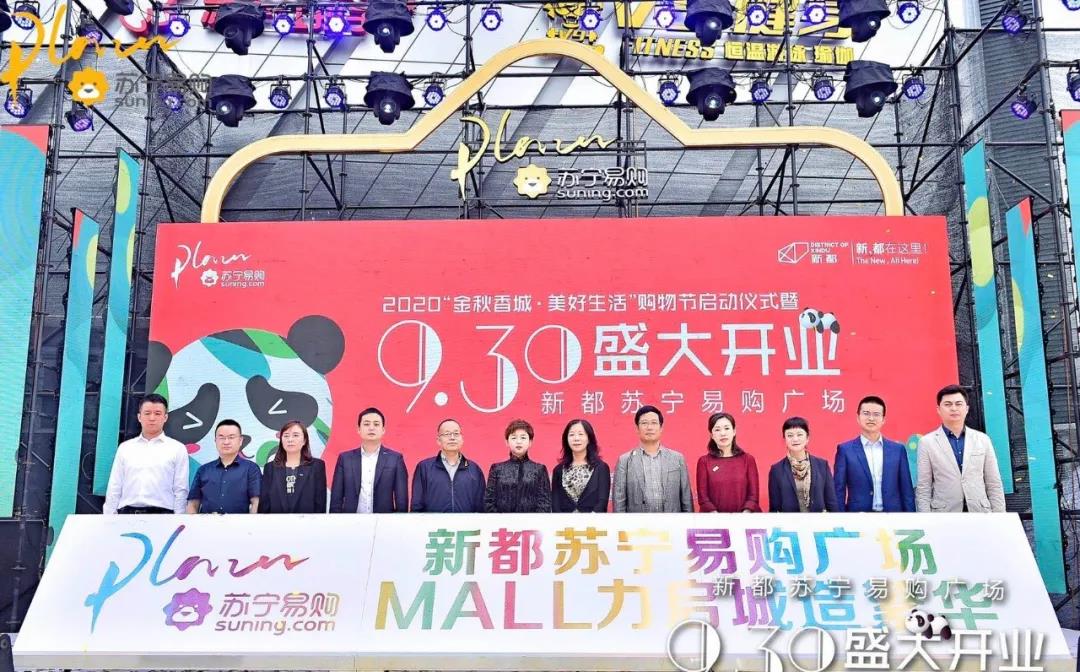 9月30日,在国庆与中秋双节同乐之际,成都新都苏宁易购广场迎来了盛大开业,同一天新都区首届“金秋香城·美好生活”购物节盛大启幕!新都区区委副书记潘捷、新都区政协副主席、工商联主席陈善彬、新都区人大副主任杨盛勇等政府领导,苏宁置业集团商业管理公司副总裁蔡珍珍、苏宁易购集团成都地区管理中心总经理徐开闯、苏宁置业成都商业管理公司总经理石志玲及苏宁各产业体系高层、苏宁商业合作伙伴、省市级新闻媒体等近200名嘉宾共同见证钟楼商圈新地标的崛起,区域消费升级新时代,由此启航!