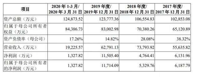 财务方面,2017年公司收入5.56亿元、2018年收入7.38亿元、2019年收入6.28亿元。