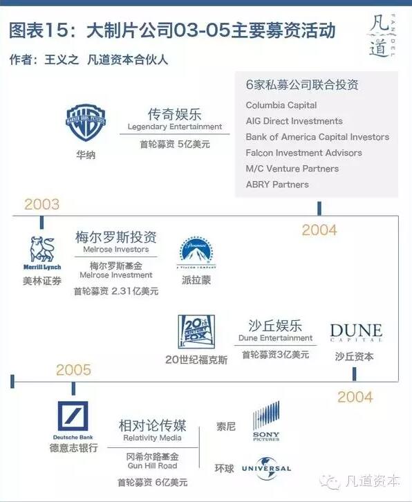 从2014年开始,国内影视公司与美国影视公司之间的合作越来越多。比如华谊兄弟牵手美国STX,湖南电广传媒牵手狮门影业。但这些合作案例与万达集团跟传奇影业之间的合作不同,前者更多是项目合作,国内外影视公司将钱投资到影片项目上,而万达与传奇影业之间的合作则是230亿真金白银的收购,这样也从项目风险扩大到了公司风险的层面。