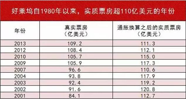 但实际上,算上通货膨胀,最近几年好莱坞的年票房反而是减少的状况。而且,2015年在北美售出的电影票数并不高,为13.06 亿张,排在史上第18名。