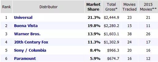 乐正传媒研发与咨询总监彭侃向娱乐资本论表示,虽然背后有大财团撑腰能渡过一些大小年,但好莱坞六大公司自己的日子不太好过。“2015年,六大公司中的3家票房收入较2014年都出现了超过10%的下降。马太效应凸显,有7部电影的票房超过3亿美元,比14年多5部。但是票房超过1亿美元的电影比14年少了7部,票房在5000万-1亿美元之间的电影比14年少了9部。中间层电影减少,这说明好莱坞电影投资的风险在增加。而传奇影业这样的公司,其在大制片厂的顶级大片里的投资额度往往是受限的。”