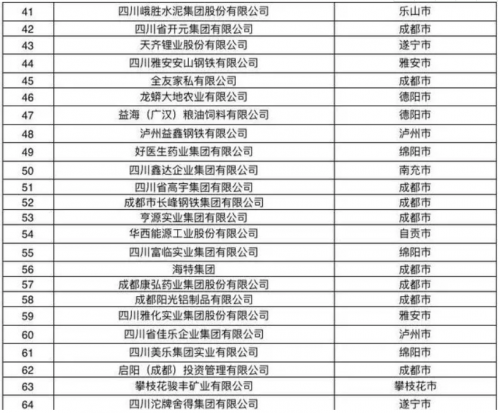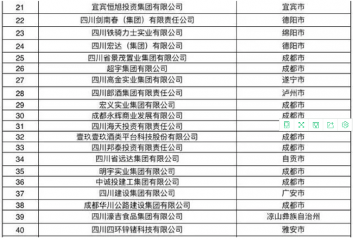 “2020四川民营企业100强”榜单