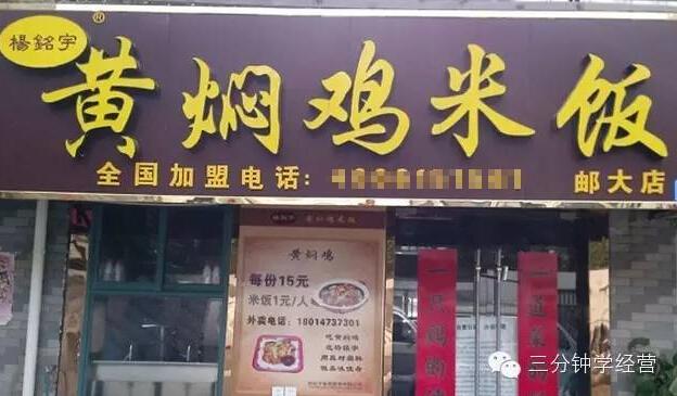 以杨铭宇“黄焖鸡米饭”为例,交2万元加盟费和5000元保证金,自己选个30多平门面房,就可以开业。总部统一配送酱料、东北陇上归长粒香大米以及冷鲜鸡块。