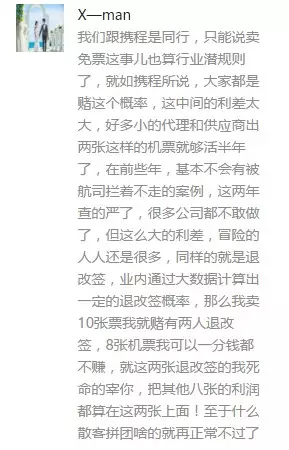 所以,正因为有着”非正常成交“手段的存在,生成了这些”非正常机票“,也就给携程等等OTA留下了灰色盈利的可能性。