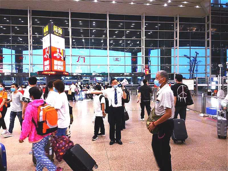 根据客流变化,强化重点列车乘降引导力量,定人定点组织旅客乘降,并在确保旅客安全乘降的基础上,严格落实站车消毒、旅客测温等疫情防控措施,确保旅客佩戴口罩进站乘车。