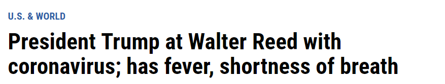 据一位知情人士透露,74岁的特朗普总统在确诊后出现发烧并出现呼吸急促的症状。