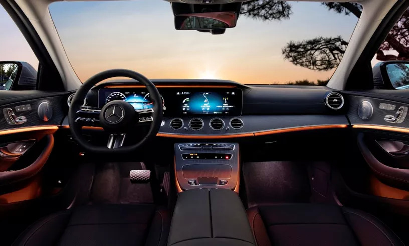E级仍旧是贯穿式双屏的风格,只是运动版的方向盘改为了与S级相近的“蜻蜓式”风格,整体所呈现的豪华感和科技感仍旧是同级的领先水准。