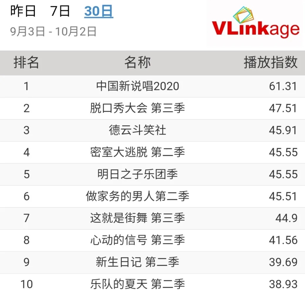然而,“叫好”并没有给节目“叫座”。根据网络数据,在过去一个月的网综播放热度指数中,优酷的头部综艺《这!就是街舞3》远低于爱奇艺的《中国新说唱2020》,同时也不及腾讯视频的《明日之子乐团季》,在垂直类节目中位居第七。