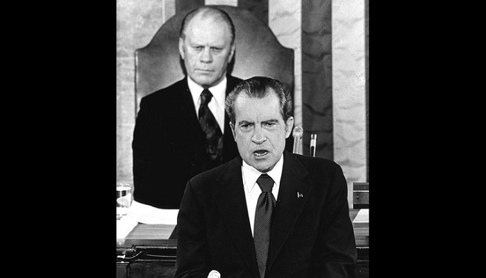 1974年1月30日,深陷“水门事件”丑闻的第37任美国总统理查德·尼克松在国情咨文中为自己开脱,“我想对今年所有美国人关心的事件——‘水门事件’的调查——表达看法。你们都知道,我已积极向特别检察官提供大量材料。我相信,这些材料是特别检察官结束调查所需的。我相信是时候将相关案件来个了断了。我已受够了持续了一年的水门事件。”