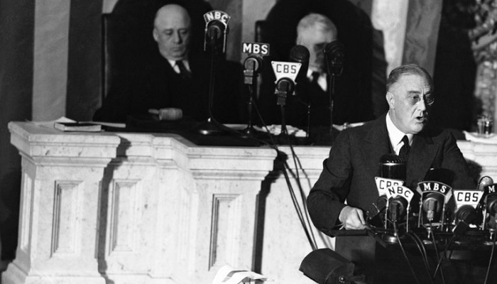 第32任美国总统富兰克林·罗斯福在1941年1月6日的国情咨文中提出了“四大自由”:“在我们力求安宁的未来岁月中,我们盼望有一个建立在四项人类基本自由之上的世界。第一是言论和发表意见的自由——在世界每一个地方。第二是每个人以自己的方式崇拜上帝的自由——在世界每一个地方。第三是不虞匮乏的自由——从全球的角度说,意味着保证使每个国家的居民过上健康的和平时期生活的经济共识——在世界每一个地方。第四是免于恐惧的自由——从全球的角度说,意味着世界范围的裁军,它是如此全面彻底,以致任何国家都无法对他国发动武装侵略——在世界每一个地方。”