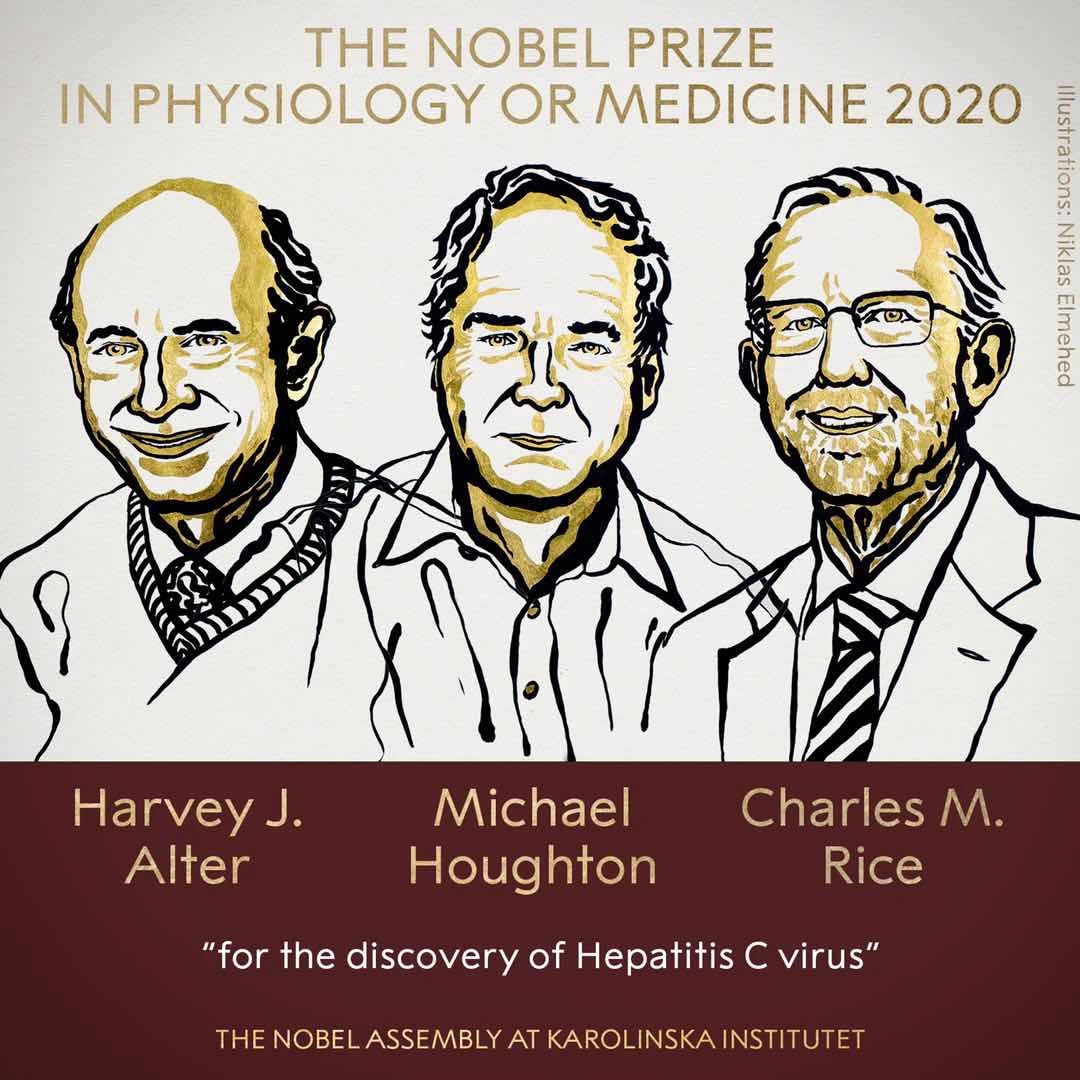 2020诺贝尔生理学或医学奖结果公布,哈维·J·奥尔特(Harvey J. Alter,)、迈克尔·霍顿(Michael Houghton)及查尔斯·M·赖斯(Charles M. Rice)共同获得2020年诺贝尔生理学或医学奖,以表彰三人在联合发现丙型肝炎病毒付出的努力及取得的成果。