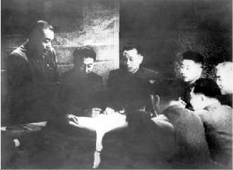 中国人民志愿军入朝后,毛主席与志愿军司令员彭德怀多次往来电报分析形势,根据朝鲜战场形势发生的重大变化,决定改变原定计划以运动战方式歼灭敌人。图为彭德怀(左一)在朝鲜前线主持作战会议。(资料照片)