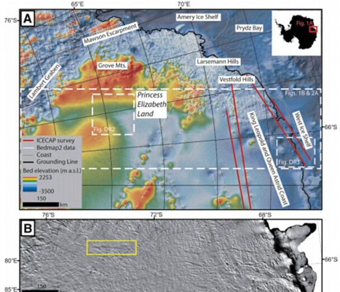 英国纽卡斯尔大学的尼尔·罗斯博士(Neil Ross)说:“研究南极洲的科学家们很早之前就意识到,由于冰的流动性,冰层表面的地形能微妙地反映出冰层下方的地貌状况。