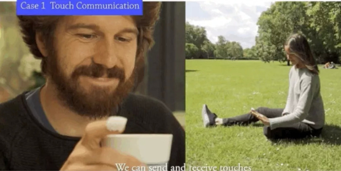 如果是在远程对话中,用户通过这个手指传感器触碰物体,与此配对连接的用户的设备在另一边也可以获得这一触碰感。