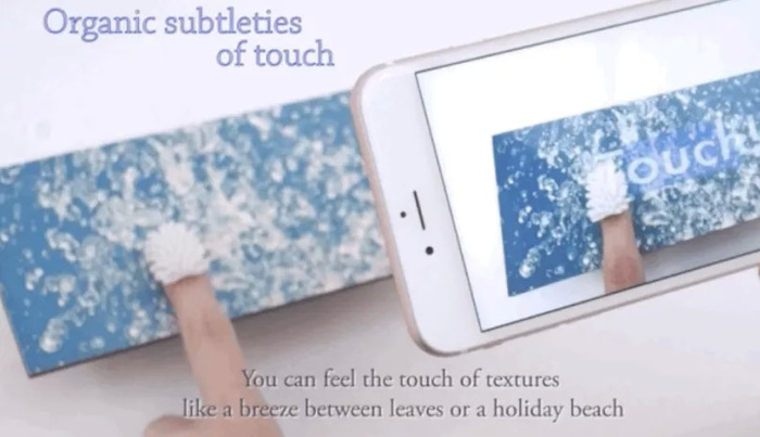 一家东京的设计工作室就开发了一种称作“Fulu”的手指上的触觉设备,用户只要带在手指上,就可以体验到各自虚拟的触碰感觉。在演示中,当手机画面虚拟地接触到不同材质的物体,手指就可以接收到类似材质的触摸感。