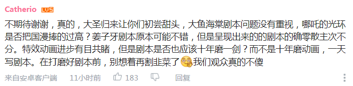 其实,好好写剧本才是王道,别老让一些恨铁不成钢的粉丝喷剧情。别把好好的一个个神话ip全都糟蹋一遍,变成一部部只有美术可圈可点的动画版国产烂片。