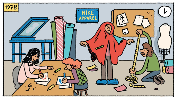为此,1978年,耐克公司设立了专门的服装设计部门,开始着手研发全新的运动服装。
