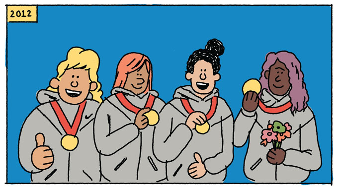 2012年伦敦奥运会,这款夹克再次登上奥运盛事的领奖台。与前者不同,这次耐克采用了Nike Flash技术——当相机快门按下,夹克也在领奖台上随之闪耀。
