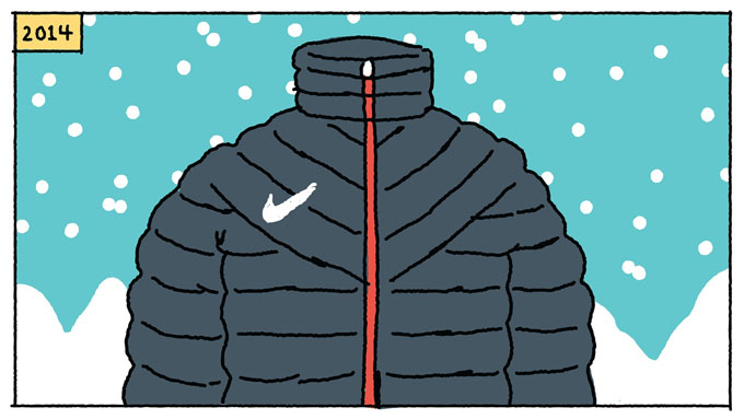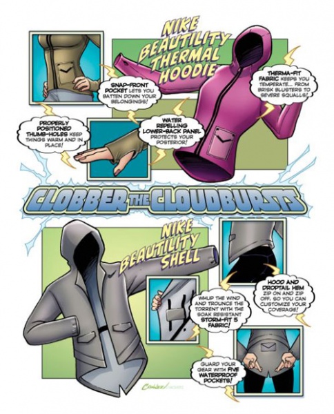 就这样,耐克与艺术家们进行合作,用一组充满趣味的漫画展示了一段商业故事。不过这并非耐克第一次采用漫画的表达形式来宣传,早在2011年底,为了展现风行者夹克冬季系列产品的特质,耐克就曾邀请两位女性漫画家,以漫画的形式描绘了产品克服运动困境的场景。当时,耐克这种“新语言”营销方式同样获得了不少称赞。