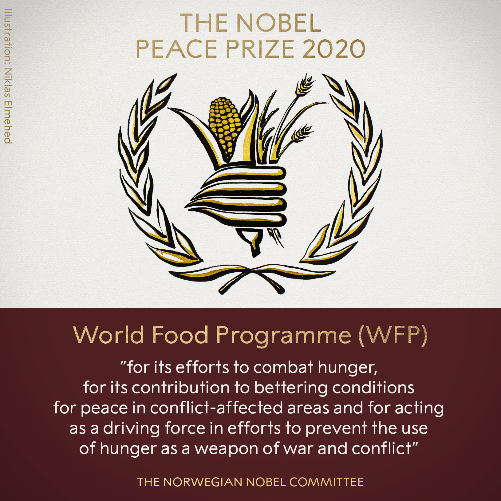 诺贝尔奖官网10月9日消息,挪威诺贝尔委员会宣布,将2020年诺贝尔和平奖授予世界粮食计划署(WFP),以表彰该组织努力消除饥饿,为改善受冲突影响地区的和平条件所做的贡献,以及在防止将饥饿用作战争和冲突武器的努力中发挥的推动作用。