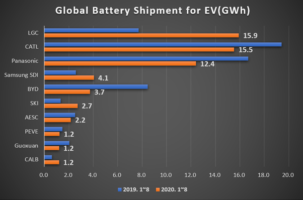 据《韩国经济日报》报道,韩国电池行业官员认为,上半年中国新能源汽车市场受新冠疫情影响严重,这是LG化学能够反超宁德时代的一个重要原因。