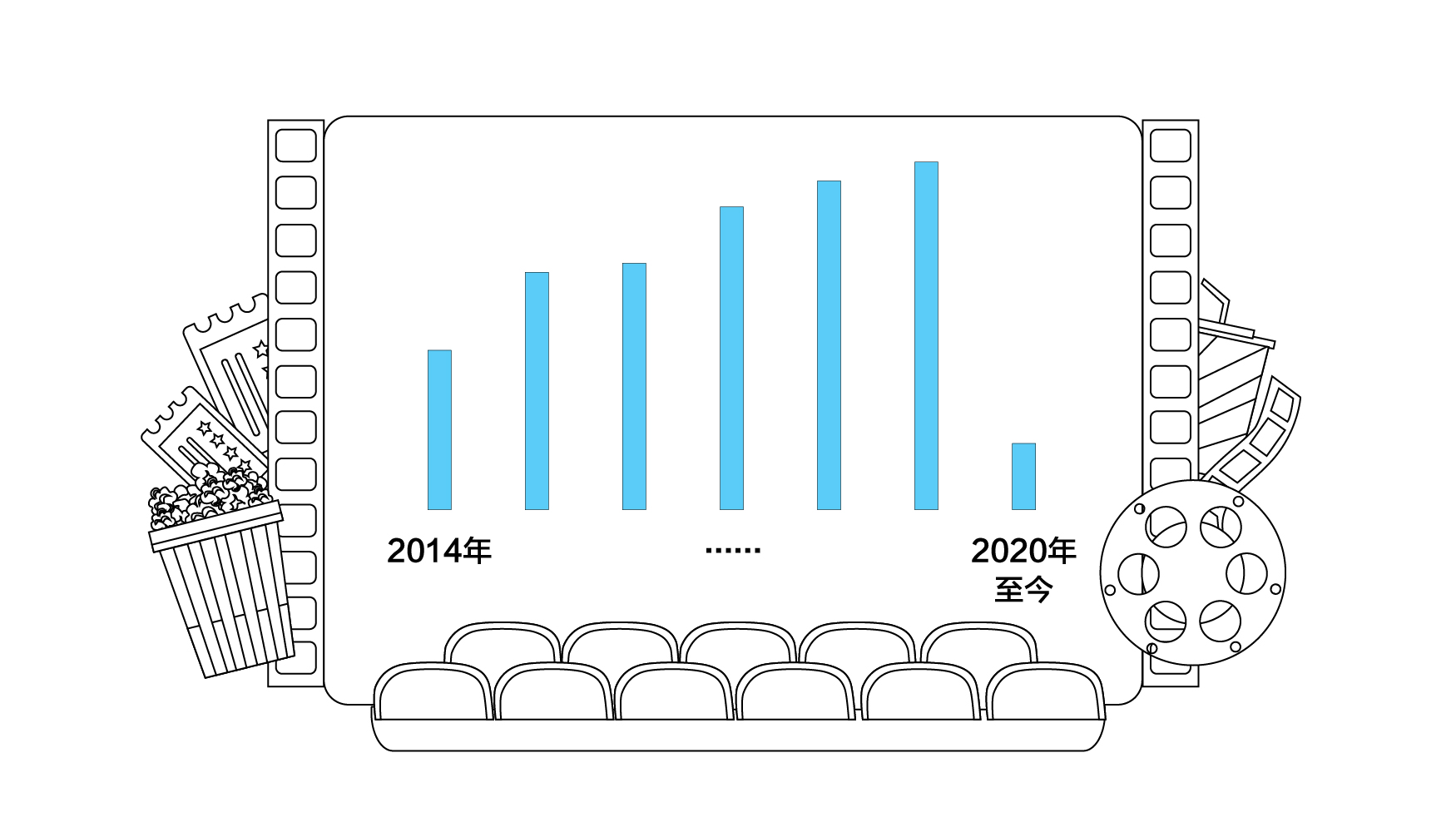 从2014年至2018年,国庆档票房占全年总票房比例均在3%至5%之间。2019年“史上最强”国庆档票房达44.66亿,占全年总票房641.49亿的6.96%。按照去年国庆档占全年总票房比例,若无疫情影响,今年全年电影总票房预计可达568亿。但由于疫情原因今年影院停工半年,自7月20日复工起逐渐恢复放映,至9月25日起上座率限制放宽至75%。对于2020年全年票房的预测,民生证券预测今全年票房将达200亿。中金给出的中性预估偏保守,约187亿。两者给出的数据相当于去年全年票房的3成。