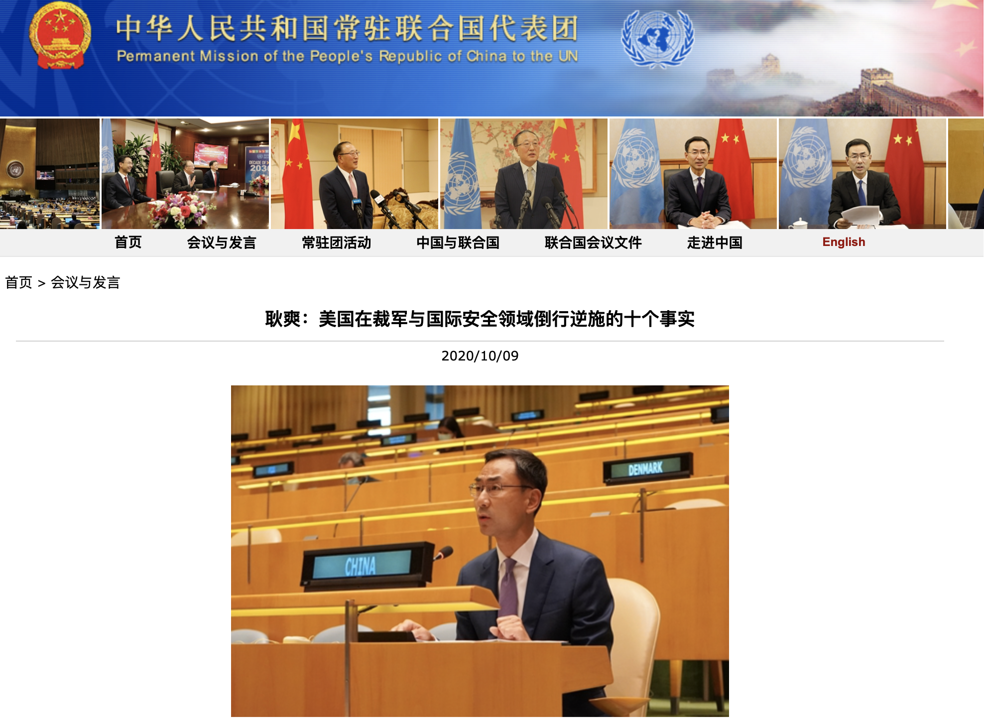 据中国常驻联合国代表团网站消息,10月9日,第75届联合国大会裁军与国际安全委员会举行一般性辩论。针对美国代表发言攻击抹黑中国,中国常驻联合国副代表耿爽大使行使答辩权,对美方进行有力驳斥和坚决回击。耿爽大使发言全文如下:
