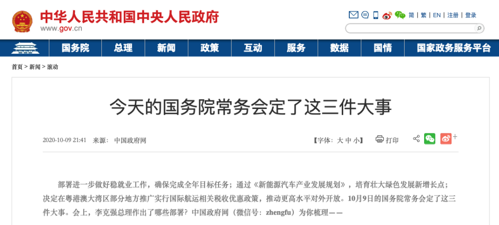 据中国政府网信息,10月9日召开的国务院常务会议上通过了《新能源汽车产业发展规划》。
