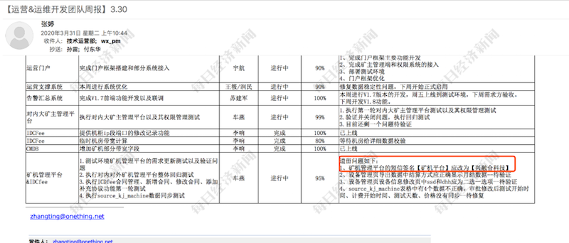 售后技术服务周报(可以看到该周报同步给了技术运营部整个部门,在2020年3月,该部门有50多人)。图片来源:陈磊供图