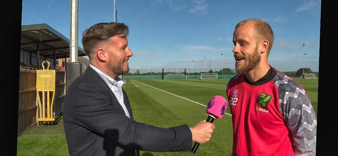 奥哈根在英超节目中,采访诺维奇前锋普基