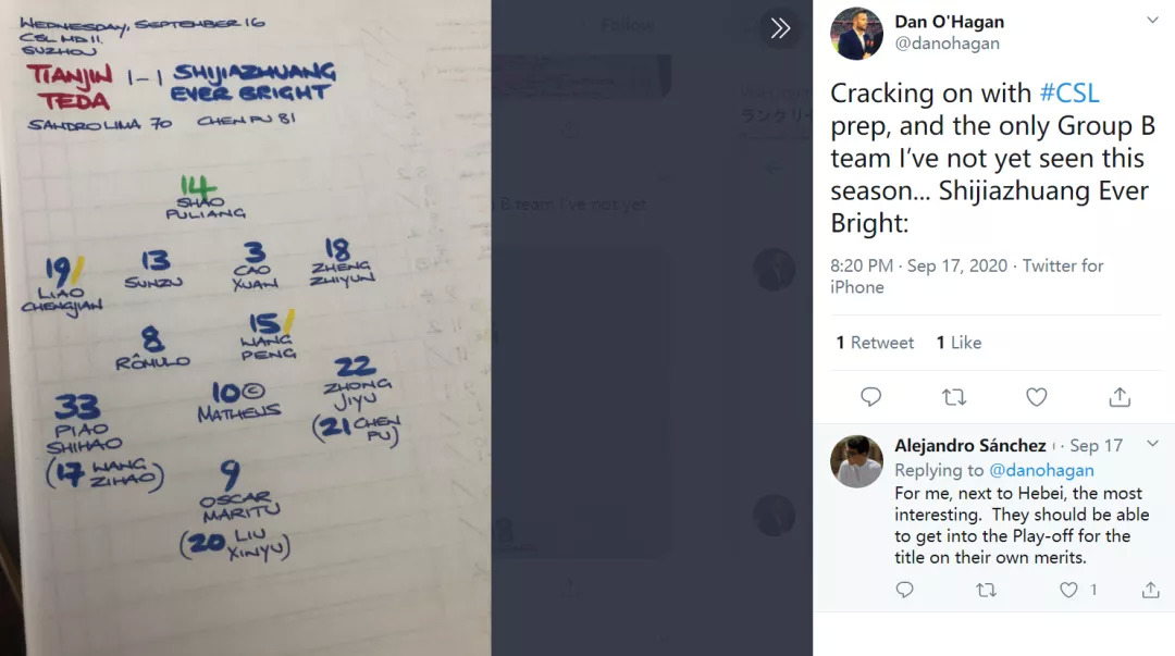 从2016到2020,「中超解说」这个身份,已经陪同奥哈根走过了四年的时间。但对多数中国球迷来说,得益于一张赛前解说手稿,他们才第一次听说了这个名字。