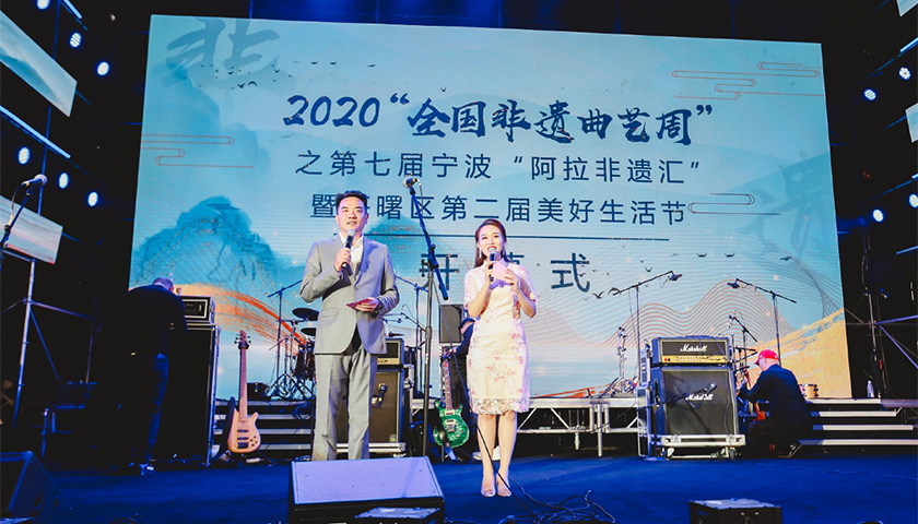 10月9日晚上,2020“全国非遗曲艺周”之第七届宁波“阿拉非遗汇”暨海曙区第二届“美好生活节”在宁波城市客厅天一广场拉开帷幕。