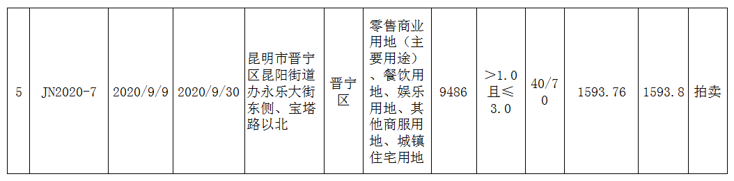 另外1宗位于昆明市晋宁区昆阳街道办永乐大街东侧、宝塔路以北面积约14亩的混合用地,最终被新城控股旗下昆明悦宸房地产开发有限公司以1594万元底价竞得,楼面价约560元/㎡。从地块所处位置来看,该宗土地或为晋宁吾悦广场项目后续开发用地。