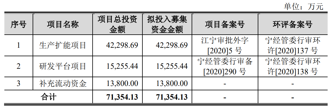 此番,美埃科技的募投项目中,就有“补充流动资金”一项,涉及金额1.38亿元,另两募投分别为“生产扩能项目”及“研发平台项目”,涉及金额分别为4.23亿元和1.53亿元。美埃科技预计募资约7.14亿元。