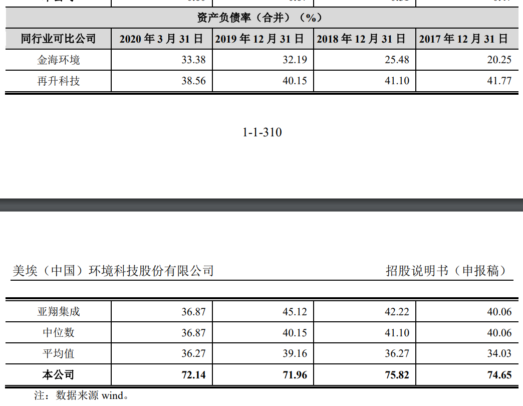 从数据上看,美埃科技的主营虽不及国际龙头,但相对A股同行,还是具有绝对优势的。不过其资产负债率却远远高于同行,叠加扩张的销售规模和居高的应收账款,这也是美埃科技急于通过上市融资改善财务原因。
