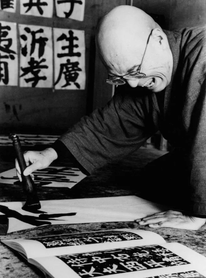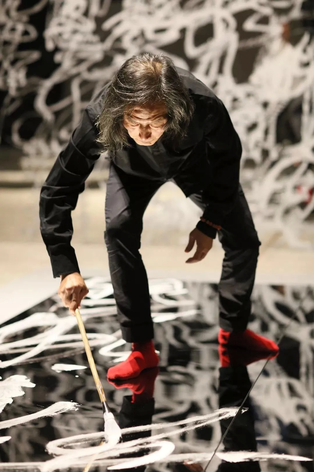 上世纪五六十年代日本的井上有一,在书法上率先走出了一条更激进、更颠覆的道路——行为书写,他的书写过程有很强的表演性和抒发性(甚至于发泄)。他是受到二战后盛行于美国的抽象表现主义(波洛克等人)的影响,意在表达人在书写过程中的不同情绪,有释放的、有压抑的、有无意识的等等。