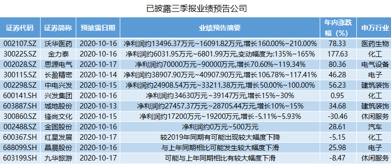 其中,五家公司预计前三季度净利润最高增幅超过一倍,分别为沃华医药(002107.SZ)、金力泰(300225.SZ)、思源电气(002028.SZ)、长盈精密(300115.SZ)、中电兴发(002298.SZ)。