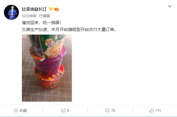 比亚迪汽车销售有限公司总经理赵长江最新发微博称,比亚迪旗下汉和唐两款车型生产加速,本月开始,旗舰型开始交付大量订单。据悉此前传闻刀片电池产能不足严重影响市场交付。