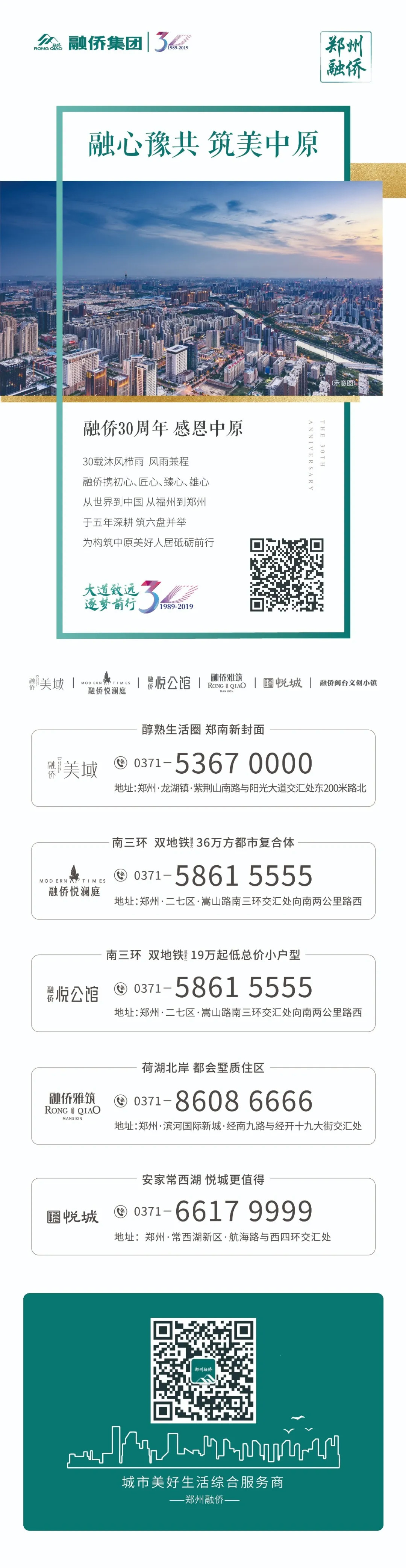 半围合式布局,新中式臻美园林,新风、地暖系统入户,断桥铝门窗、三层中空玻璃配置,为城市青年精筑品质人居,郑州融侨6周年庆,建面约89-121㎡瞰景华宅,臻席递减,钜惠秒杀中!