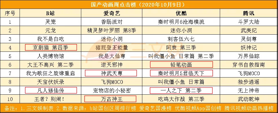 新晋榜单《凡人修仙传》是一部改编自作家忘语同名小说的玄幻热血3D动画,B站独播。由于下半季定于10月11日上线,人气再度复苏,晋入榜单前十。截至10月9日,连载至8话,累计追番人数226.8万,总播放量7782.7万,本周以综合得分277985分排名第九。