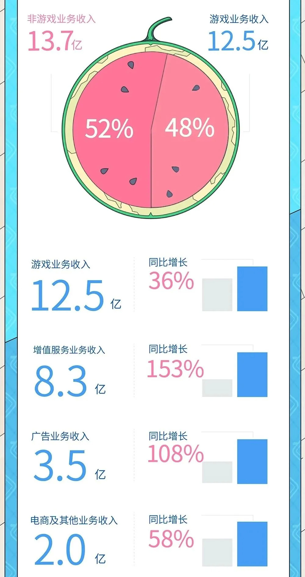 同时,游戏仍然是B站的主要营收来源,占总营收将近一半,此外,直播带来的虚拟消费和广告业务也是其重要收入来源。