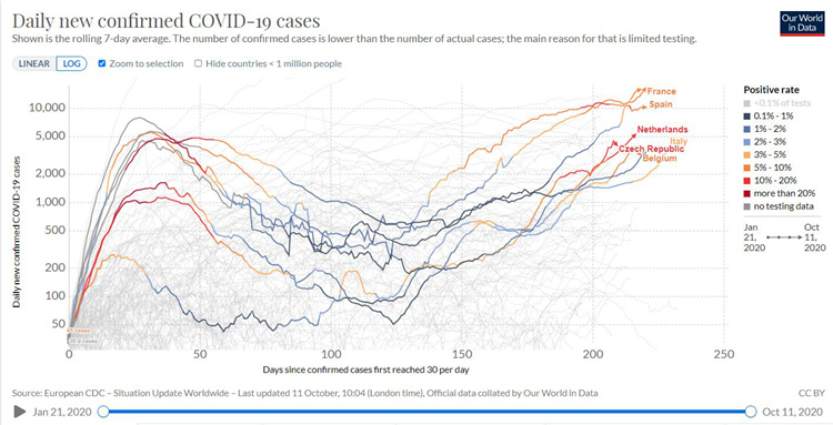 包括捷克在内,大部分欧洲国家正在经历第二波疫情的曲线爬升期,老年患者的数量再度增加,也意味着各国医疗系统将面临更大压力。
