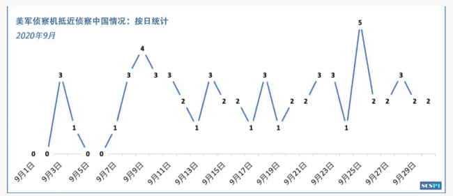 南海战略态势感知10月12日消息,尽管仍频频遭遇台风,9月美军仍出动了总计60架次的侦察机前往中国近海开展侦察行动,总数较7、8月基本持平 。