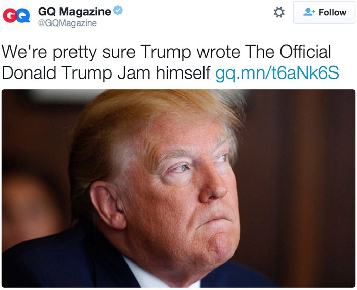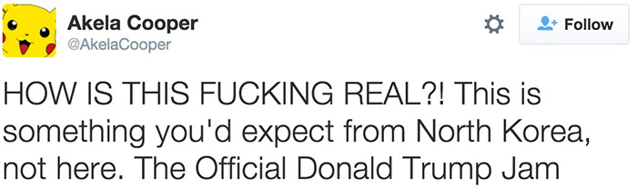 “从画风上来看,这歌绝哔是川普自己写的。”
