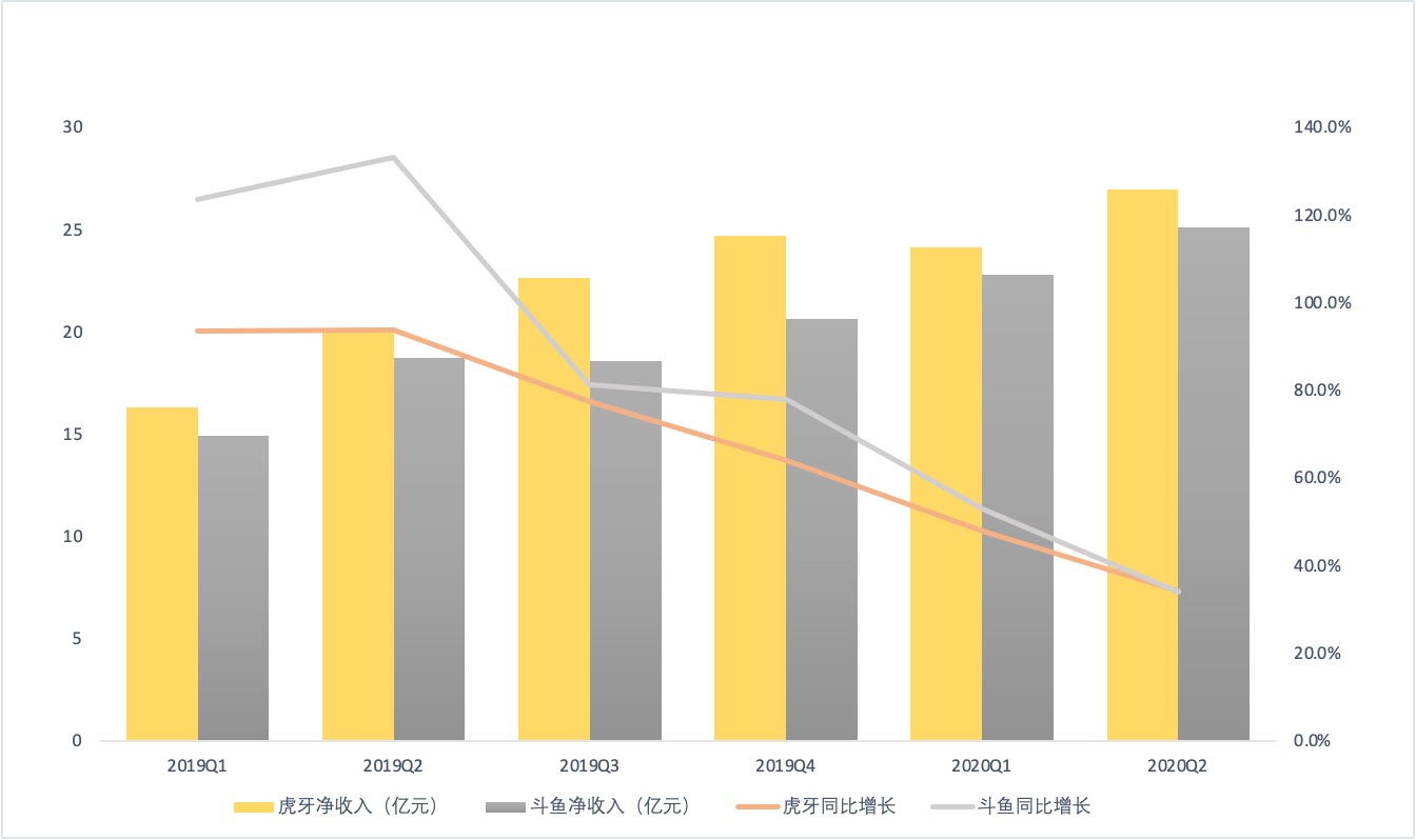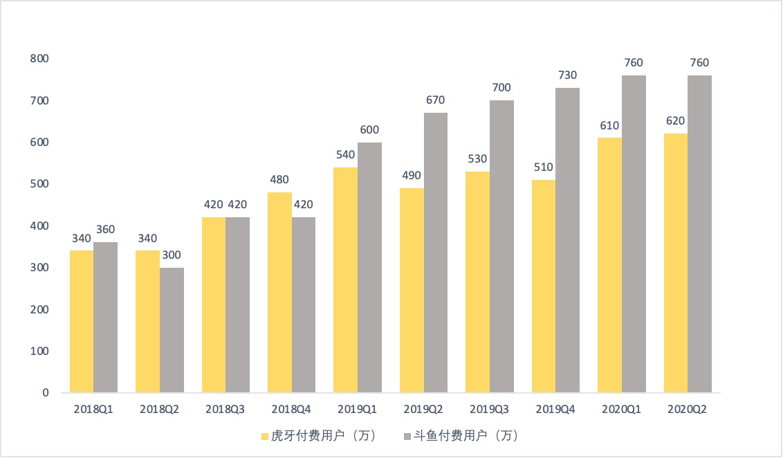 从双方上市之后披露的数据来看,虎牙在营收与利润方面一直优于斗鱼,但斗鱼的日活与付费用户则高于虎牙。直至最新的二季报,虎牙才在月活用户方面实现了反超,但在付费用户方面,虎牙距离对手仍有不小差距,比斗鱼少140万人。