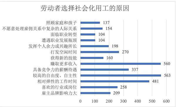 “我们现在的劳动者就业方式会越来越多元,传统的雇佣方式并不是劳动者获取报酬的唯一方式,劳动者可以充分利用他的人力资本变现,另一方面,劳动者对工作的诉求不再是获取固定工作,更为偏爱个人时间的自主性,以及工作和家庭、健康的平衡。”中国人民大学劳动人事学院博士赵磊对此总结。
